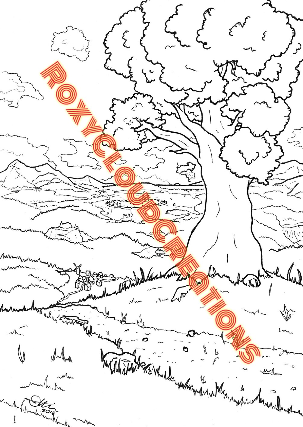 Easy coloring page - Landscape - instant download digital print - 4COLOR